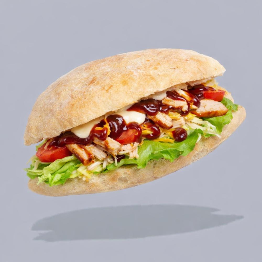 Сытный донер, приготовленный в мягкой фирменной чиабатте. В составе — свежая капуста, помидор, маринованный огурец и маринованный лук, а также сочная курица. Всё дополняет фирменныц соус, который делает вкус более ярким и пикантным. Донер получается сочным, ароматным и отлично подходит как полноценный перекус или обед.
