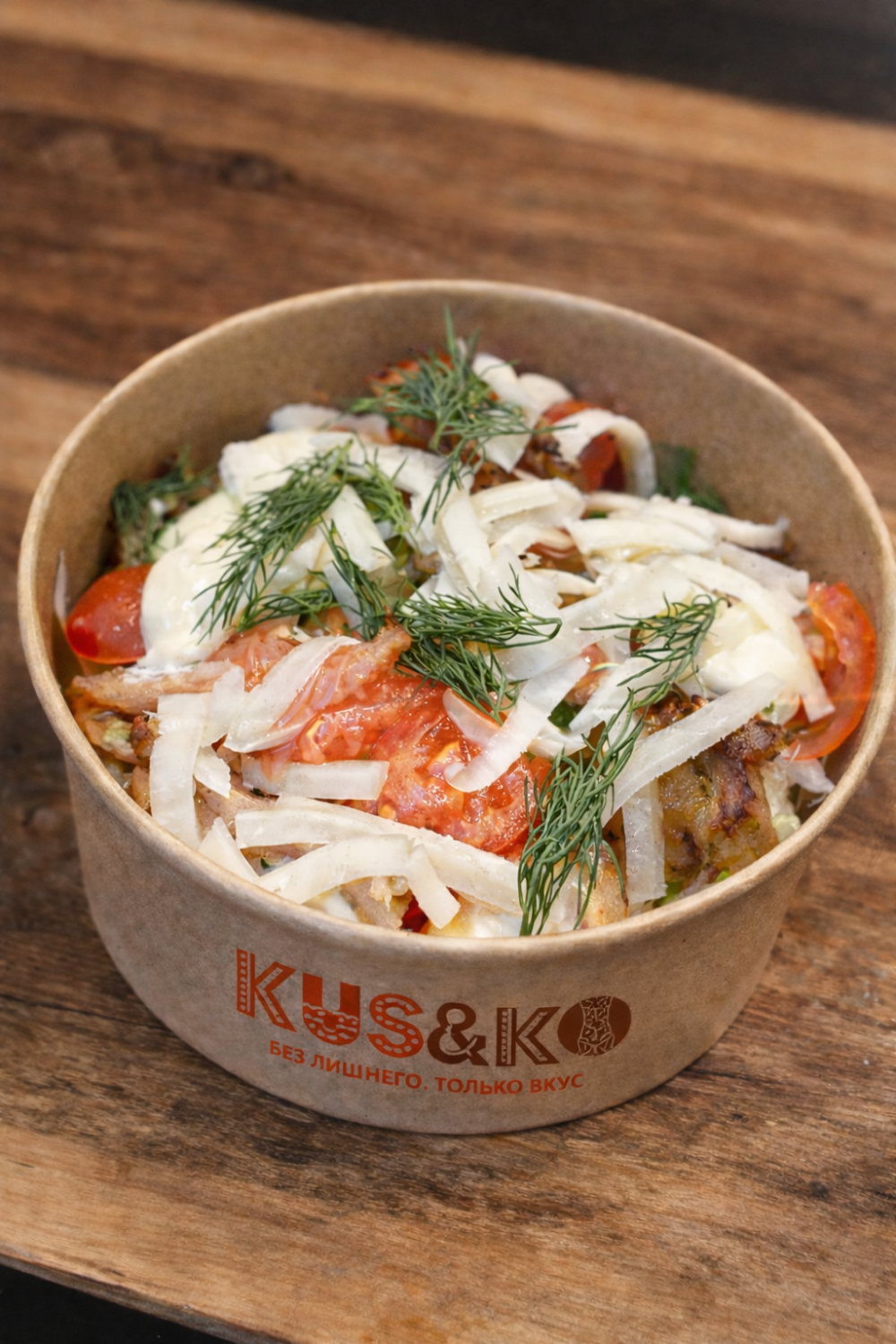 Салат из пекинской капусты со свежими огурцами, помидорами и тёплым мясом птицы гриль. Дополнен сыром моцарелла,тёртым сыром чеддер, зеленью и заправлен соусом «Цезарь». Лёгкий, свежий и при этом сытный салат с мягким сливочным вкусом.