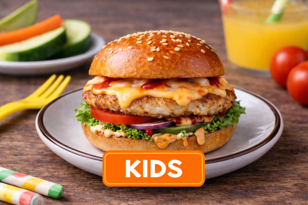 Нежная куриная котлетка с румяной корочкой, мягкий расплавленный сыр и свежие овощи — всё в удобном маленьком бургере, приготовленном с заботой о детях. Лёгкий соус и мягкий вкус, которому можно доверять. Идеальный выбор для маленького аппетита.