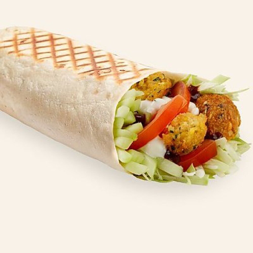 Легкая овощная шаурма: лаваш, пекинская капуста, свежий огурец, помидор и сладкая кукуруза. Нежный соус подчеркивает свежесть и натуральный вкус ингредиентов.
